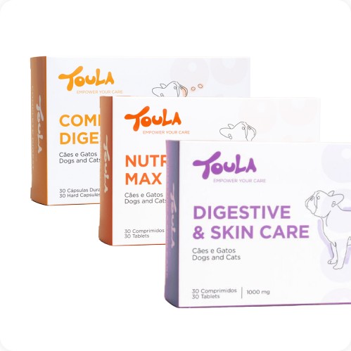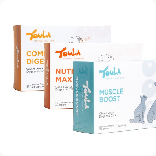 Aqui encontras suplementos naturais desenvolvidos por veterinários para apoiar a saúde e o bem-estar do teu cão ou gato, com segurança, eficácia e foco naquilo que realmente importa.